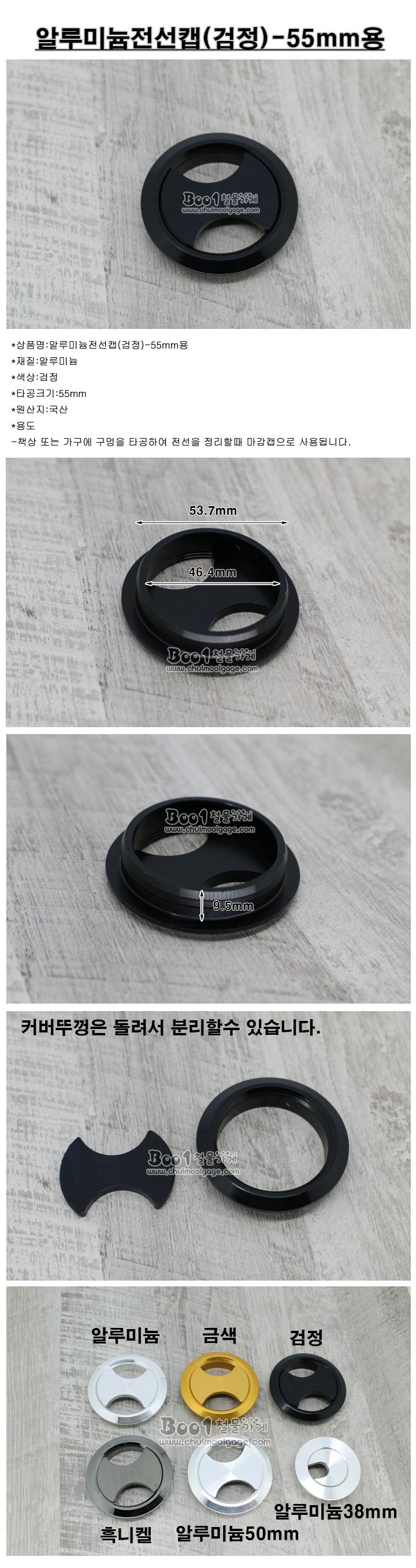 > 알루미늄전선캡(검정)(55mm용)(가구철물/가구부속/마감캡/상단캡/홀캡/캡/전선캪)