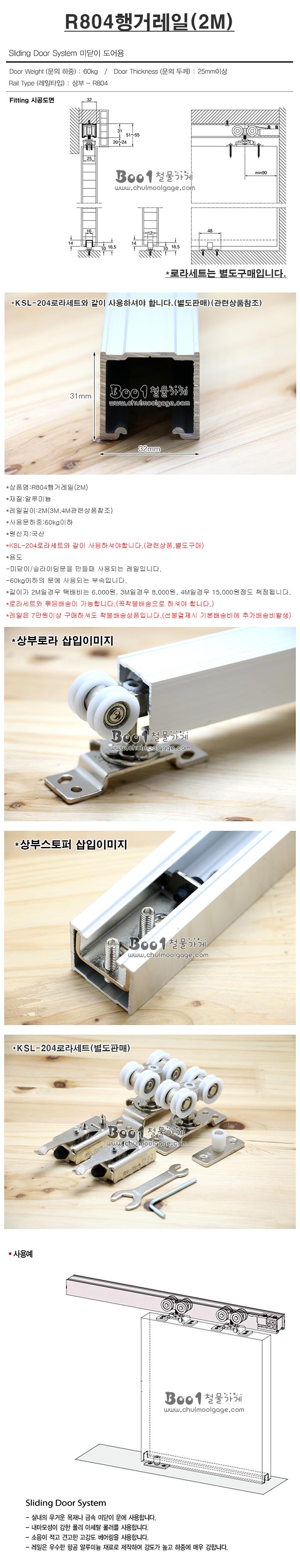 R804레일(2M)(60kg이하)(슬라이딩레일/미닫이레일/미닫이문부속/슬라이딩문부속/행거레일/행거부속/슬라이딩로라/미닫이로라)