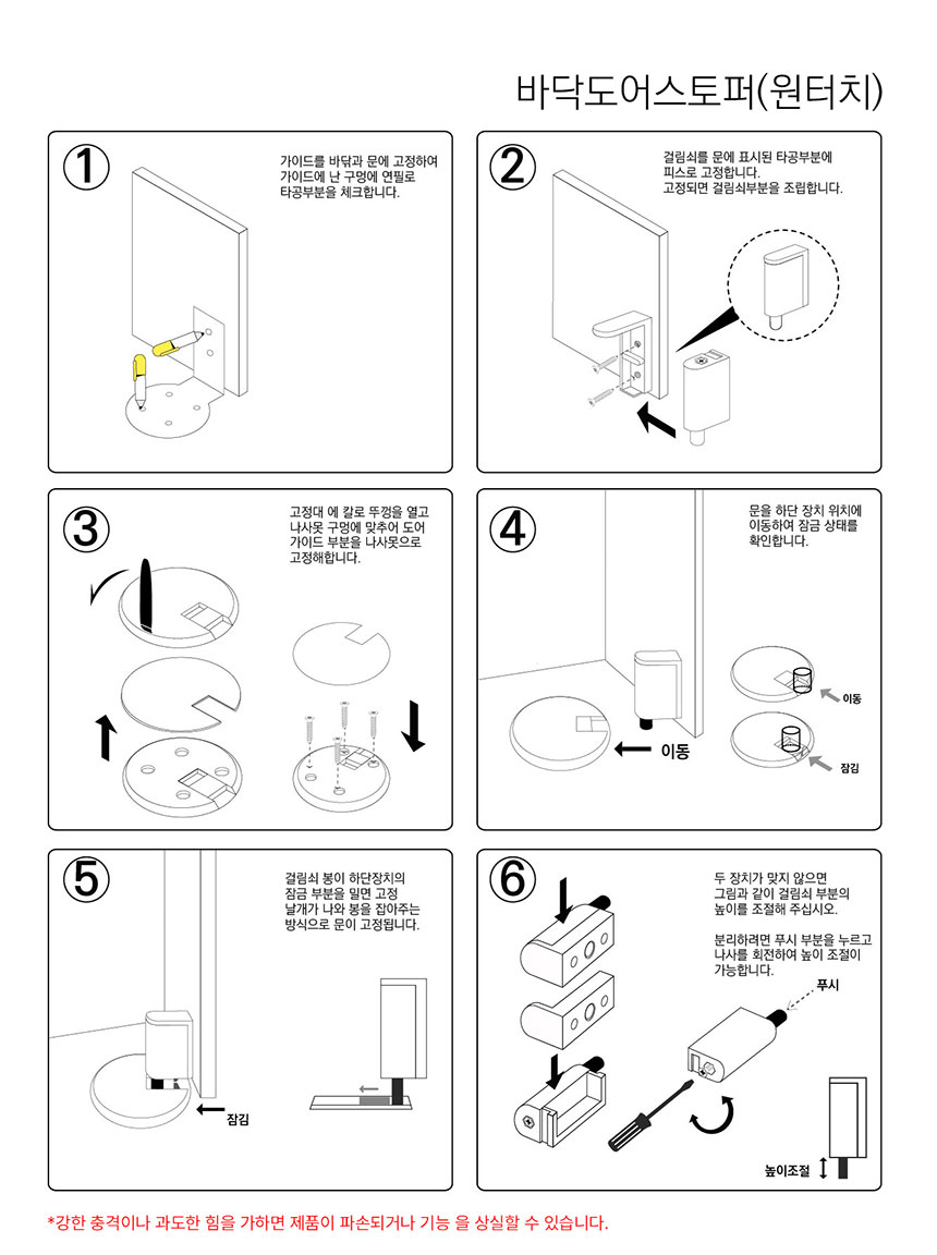 > YJ 원터치 바닥 도어스토퍼 문고정장치 닫힘방지 범퍼 쿠션
